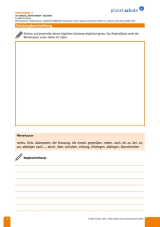 Nach dem Vergleich der Schulwege von To und Jafer sollten diese auch unbedingt mit den eigenen Schulwegen verglichen werden. Übungstipp: Die Schulwege der beiden Jungen schriftlich festhalten – in Form einer Wegbeschreibung, gegebenenfalls mit Skizze.
