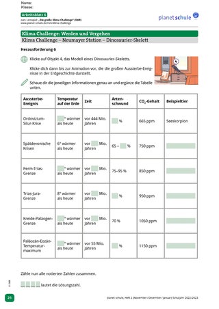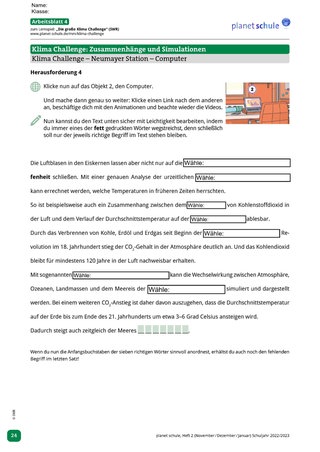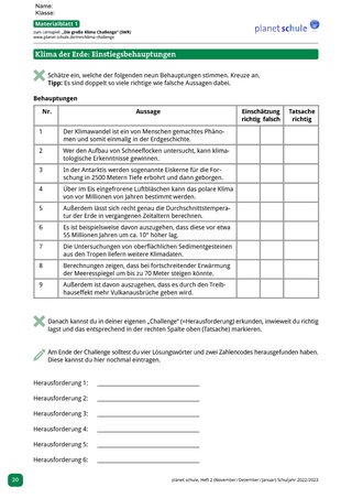 Material: Internet, Spiel „Die große Klima Challenge“, Arbeits- und Materialblätter
