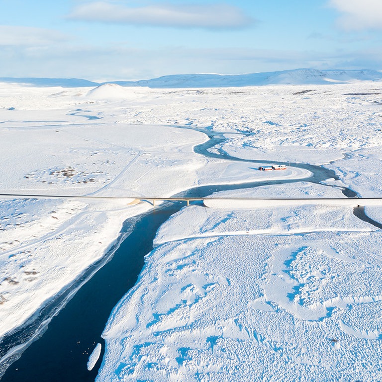 Große Eisflächen wie es sie in den Polarregionen und an Gletschern gibt, haben eine hohe Albedo. Wenn sie auftauen, kann die Erde weniger Sonnenlicht reflektieren und wird noch schneller wärmer.