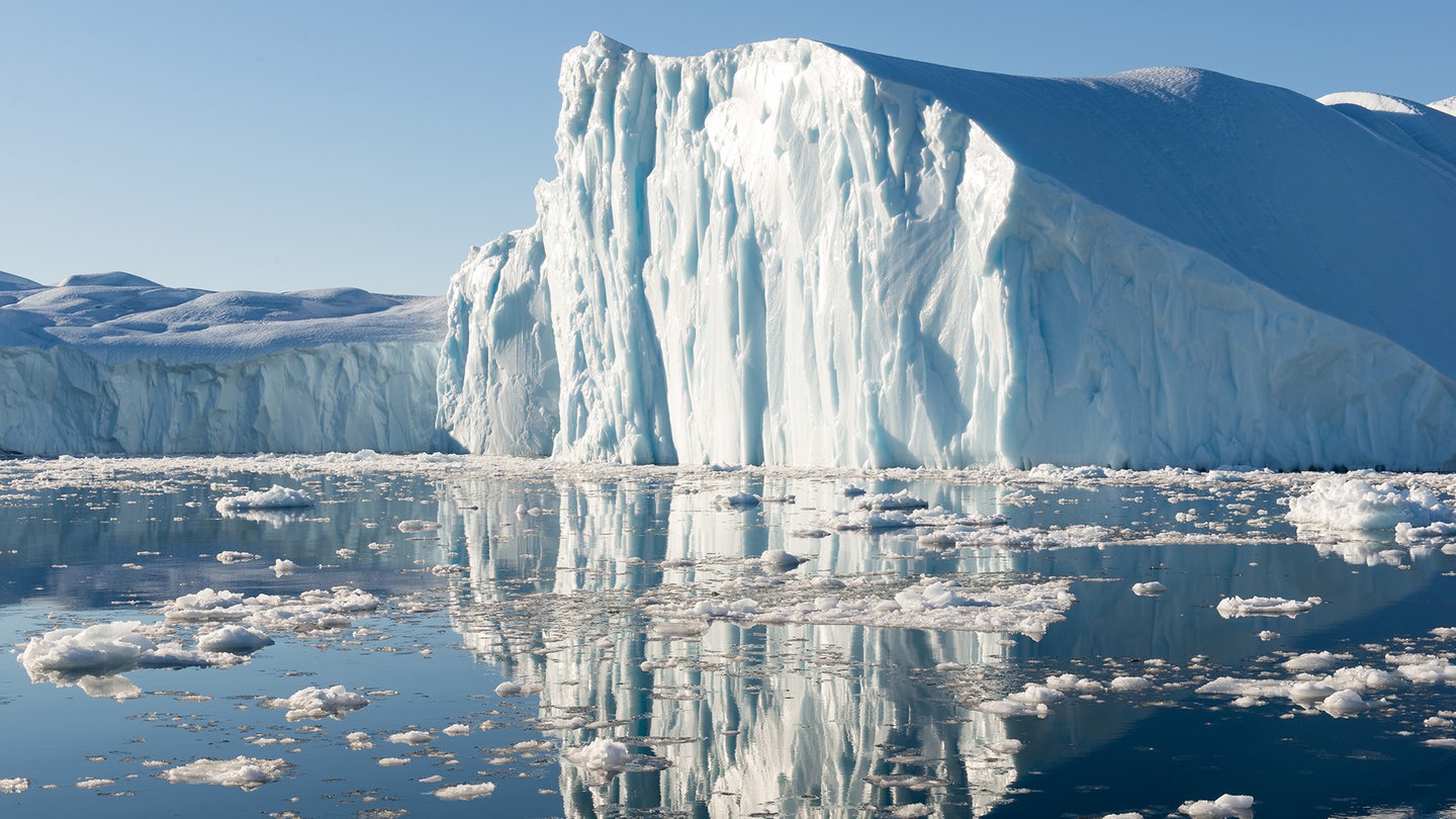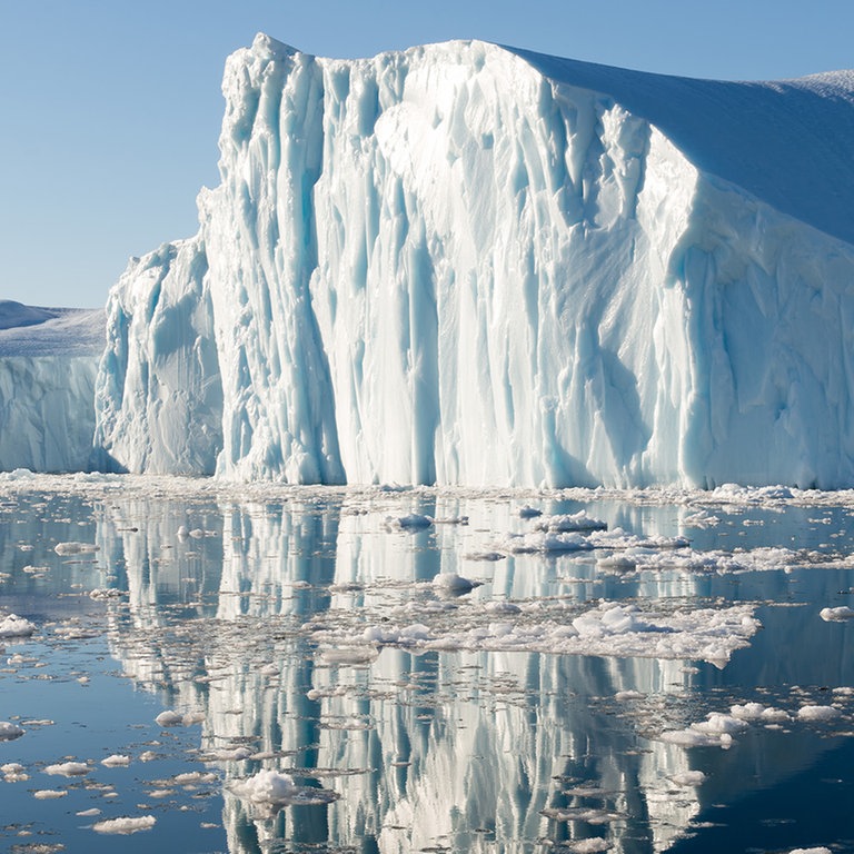 Die größten Eisflächen der Erde befinden sich in der Arktis und der Antarktis. Durch die Neigung der Erde und ihre Kugelform fallen die Sonnenstrahlen dort in einem sehr flachen Winkel ein, das heißt es kommt weniger Wärme an. Außerdem gibt es im Winter lange Dunkelphasen, in denen die Sonne fast gar nicht scheint. Die Temperaturen erreichen dann bis zu -70°C. Das arktische Eis am Nordpol schwimmt zum größten Teil auf dem Meer, während die Eismassen in der Antarktis auf festem Boden aufliegen. Sie sind bis zu drei Kilometern dick.