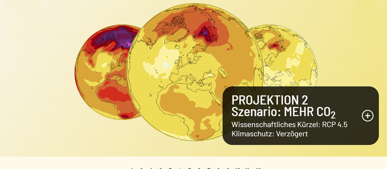 Es ergeben sich unterschiedliche Strahlungsantriebe, das heißt wie stark der Mensch die Energiebilanz der Erde beeinflusst. RCP2.6 steht dabei für ein unterstes optimistisches Szenario, RCP4.5, RCP6.0 für pessimistischere und RCP8.5 für ein oberstes pessimistisches Szenario. Es handelt sich dabei nicht um Vorhersagen, sondern um die Darstellung von Möglichkeiten.
