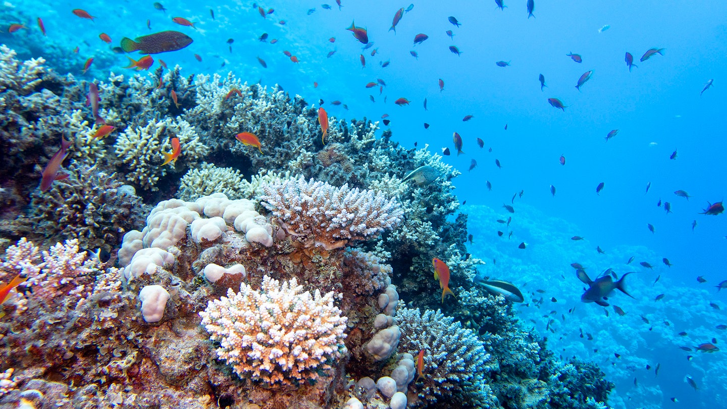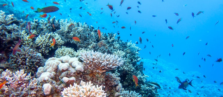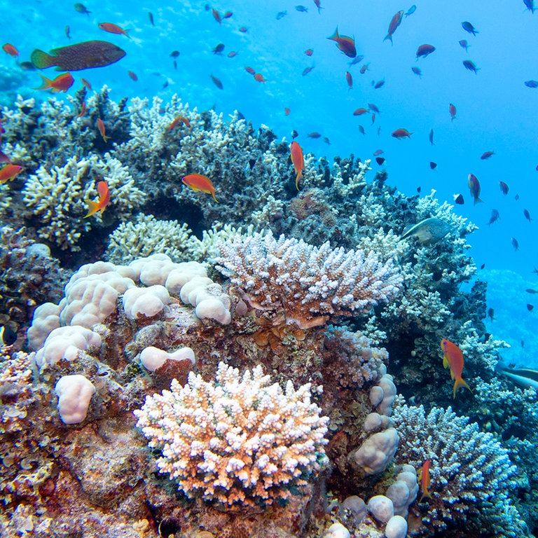 Die Ozeane nehmen Kohlendioxid aus der Luft auf. Durch chemische Reaktion wird das Wasser saurer, was die Kalkbildung von Muscheln und Korallen hemmt.