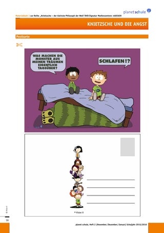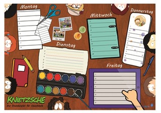 Denken ist wie Brausepulver für den Kopf, findet Knietzsche. Das kann aufregend sein, blubbern und prickeln. Denken und Spaß gehören zusammen! Hier laden Knietzsche und seine Freunde zum Spielen, Malen und Basteln ein. Es gibt Postkarten, Ausschneidefiguren und Stundenpläne - alles kostenlos zum Herunterladen, Benutzen, Tauschen und Verschenken.