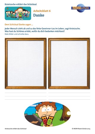 Schließlich überlegen sie, was für sie bisher die Gewinner-Lose im Leben waren und wofür sie "dem Schicksal" danke sagen möchten. (Arbeitsblatt 6 Danke)