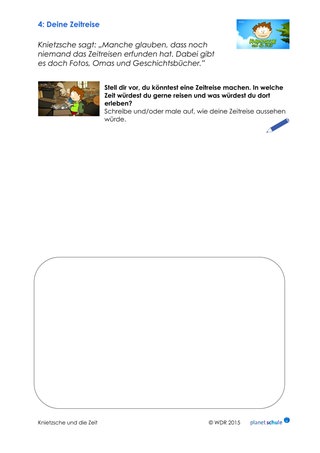 In welche Zeit würden die Kinder gerne reisen? Auf Arbeitsblatt 4 schreiben oder malen sie auf, in welche Zeit sie gerne reisen und was sie dort erleben würden.