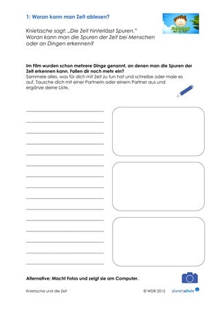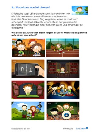 Hier finden Sie Unterrichtsmaterial inklusive Arbeitsblätter für die 3. bis 6. Klasse zum Film „Knietzsche und die Zeit“.