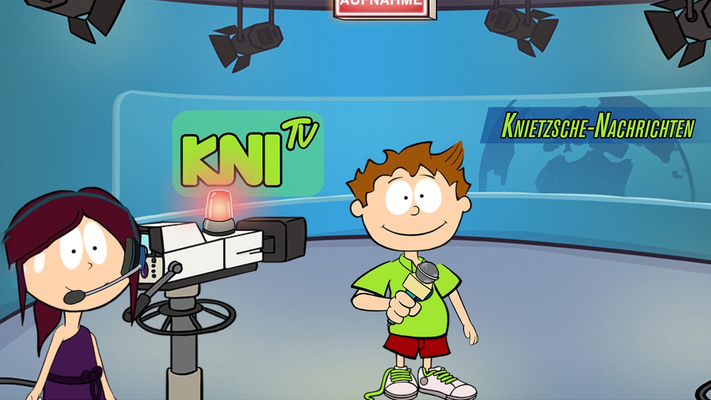 In der Geschichtenwerkstatt von Knietzsche gibt es zahlreiche Möglichkeiten zur Gestaltung von Geschichten mit Bildern und Beschriftungen. Mit neuen Figuren, Gegenständen und Hintergründen zum Thema Medien können Kinder nun auch eigene Nachrichtengeschichten erzählen. Knietzsche und seine Freunde ziehen mit Kamera und Mikrophon los, sie berichten über viele Ereignisse und arbeiten gemeinsam im Nachrichtenstudio. Kinder können mit der App selbstentdeckend die Welt der Medien und verschiedene Methoden kennen lernen.