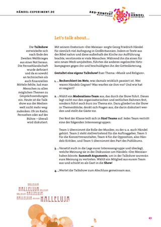 Höhere Klassenstufen setzen sich außerdem mit der Entstehungsgeschichte des Oratoriums auseinander und diskutieren das Zusammenspiel von Musik und Religion.