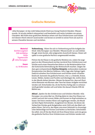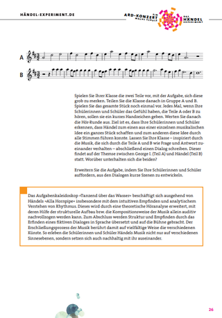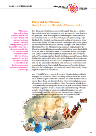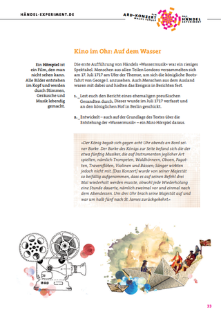 Mit dem Unterrichtsmaterial erfahren Schülerinnen und Schüler der Unterstufe mehr über die Entstehung des Werks und lassen in Comics, Hörspielen oder Theaterszenen die Party auf der Themse lebendig werden. Sie lernen außerdem das berühmte Stück "Alla Hornpipe" kennen und probieren sich in der grafischen Notation aus.