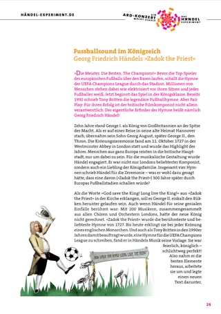 Anlässlich der Krönung des britischen Königs George II. komponierte Georg Friedrich Händel die Hymne "Zadok the Priest". 300 Jahre später schallt die Melodie als Champions League Hymne durch Europas Fußballstadien.