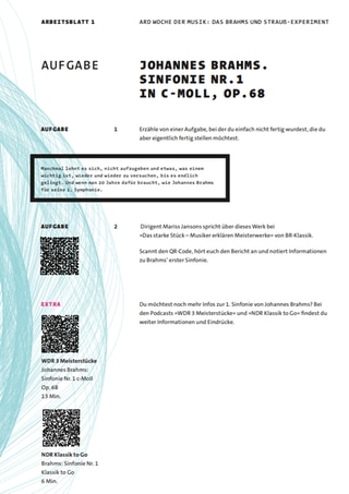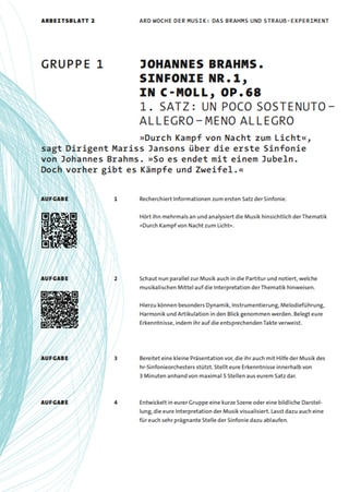 - Die Schülerinnen und Schüler sollen die Sinfonie Nr. 1 von Johannes Brahms kennenlernen und die zentrale Thematik „Durch Kampf von Nacht zum Licht“ interpretieren.