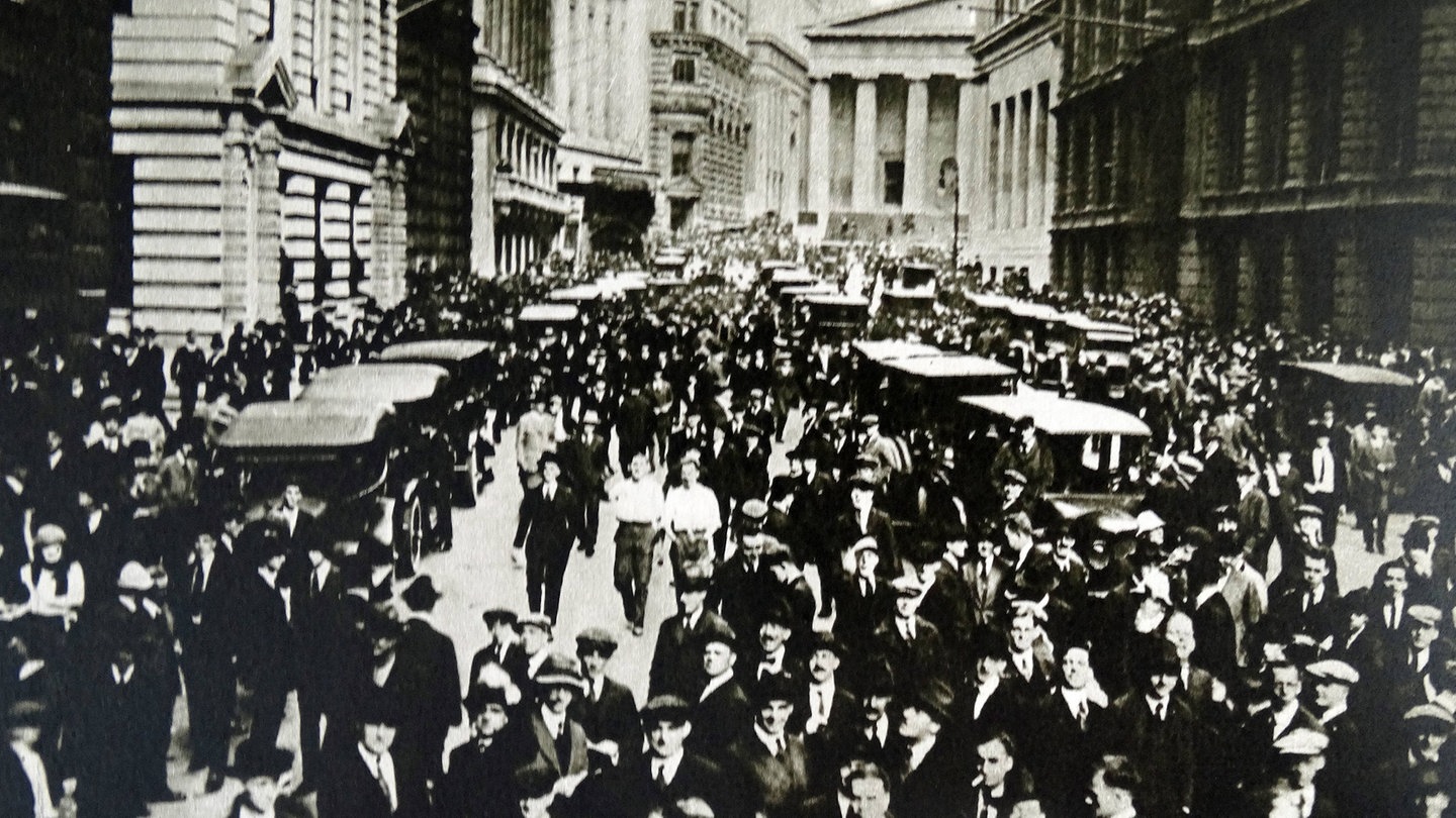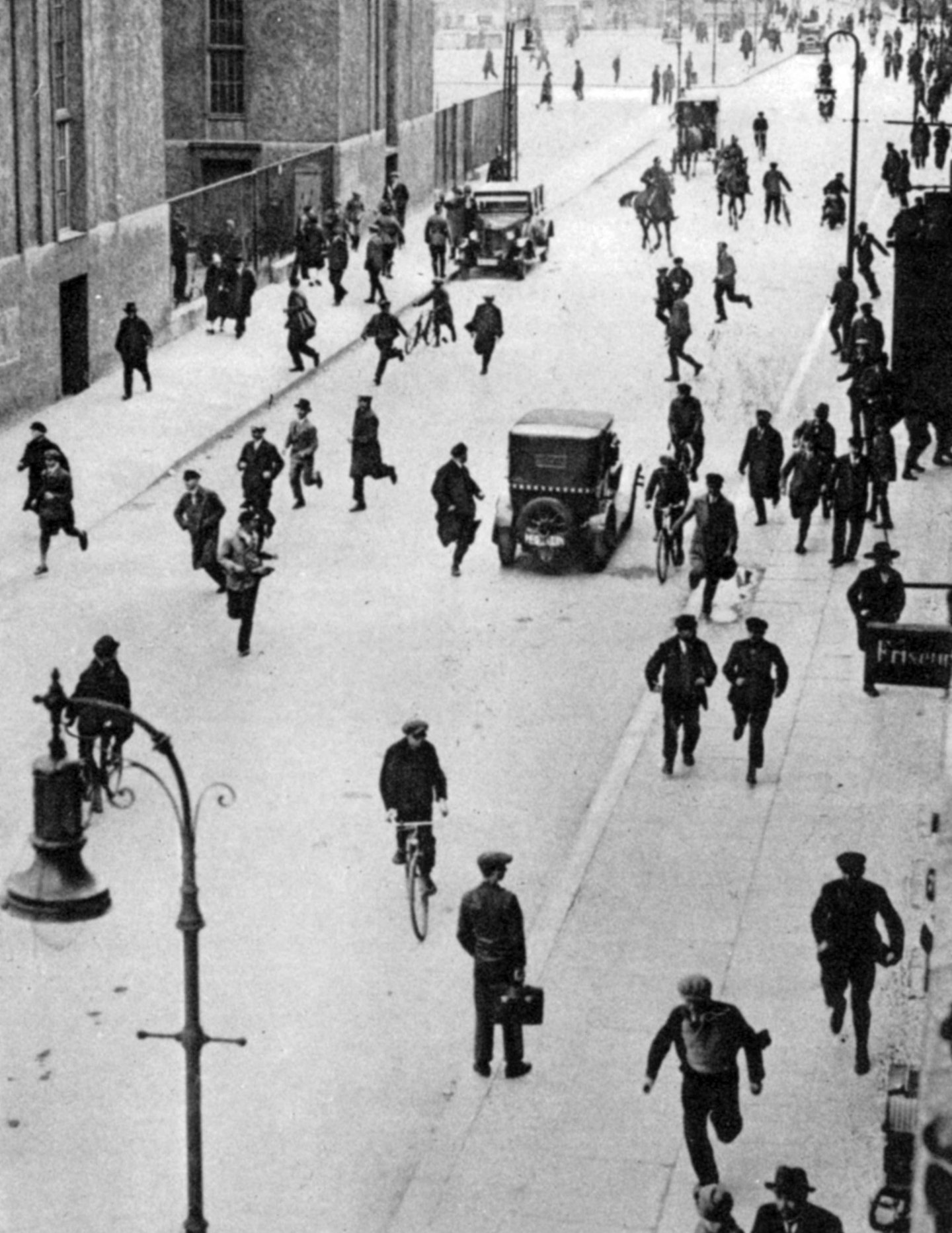 In den USA wird der wirtschaftliche Boom der 1920er Jahre von der Automobil- und der Konsumgüterindustrie angetrieben. Waschmaschinen, Kühlschränke und Staubsauger halten Einzug in die privaten Haushalte. Das Wachstum ist in nie gekanntem Umfang kreditfinanziert. Die Kredite für Konsumzwecke steigen von etwa 100 Millionen US-Dollar 1919 bis 1929 auf über 7 Milliarden. Steuersenkungen stimulieren Investitionen, Lohnsteigerungen sorgen für Optimismus, die Macht der Banken wächst, der Aktienhandel erreicht Rekordwerte. Der Boom mündet in eine Überproduktionskrise; als die Märkte gesättigt sind, geht die Nachfrage zurück, die Firmen werden ihre Waren nicht mehr los, der Absatz und der Export nach Europa brechen ein. Im Oktober 1929 platzt am „Schwarzen Freitag“ die Spekulationsblase; als Folge der internationalen Verflechtung weiten sich die Kursstürze an der New Yorker Börse zu einer Weltwirtschaftskrise aus. Sie führt weltweit zu einem starken Rückgang der wirtschaftlichen Gesamtleistung, der in den einzelnen Ländern unterschiedlich lange dauert und zum Teil erst im Verlauf des Zweiten Weltkriegs überwunden wird.