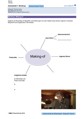 Auf Arbeitsblatt 1 ergänzen die Schülerinnen und Schüler dann die allgemeinen Aspekte eines Making-ofs und besprechen ihre Ergebnisse in der Klasse.
