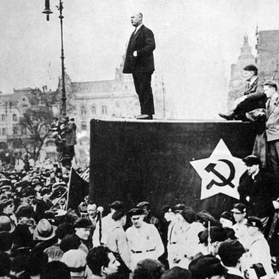 Die Arbeiter treten in den Generalstreik; Polizei und Militärbehörden leisten fast nirgends ernsthaften Widerstand. Bald liegen die militärische und ein Teil der politischen Macht in den Händen der Arbeiter- und Soldatenräte. Am 9. November wird Kaiser Wilhelm II. zur Abdankung gezwungen. Das Deutsche Kaiserreich - 1871 nach einem siegreichen Krieg gegründet - kollabiert am Ende eines verlorenen Krieges. Philipp Scheidemann (SPD) ruft die Deutsche Republik aus, Karl Liebknecht (USPD) die Freie sozialistische Republik Deutschland.