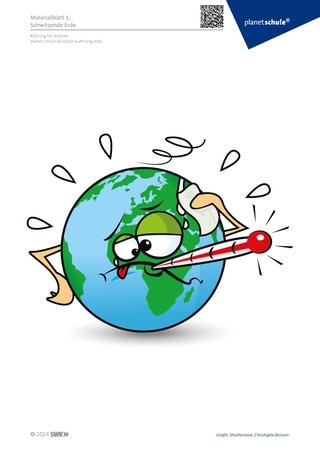 Als Einstieg wird ein Bild von einer kranken Erde gezeigt (Materialblatt 1). Die Schüler:innen beschreiben zunächst das Bild , benennen mögliche Ursachen (Treibhauseffekt, Klimawandel, Erderwärmung, …) und erklären einzelne Fachbegriffe.