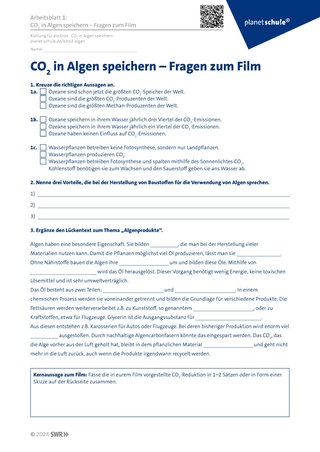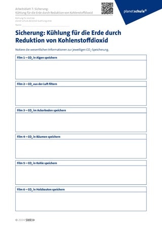 Material: Beamer/Bildschirm, Arbeitsblätter, Tablets, Website: www.planet-schule.de/x/co2-kuehlung-erde