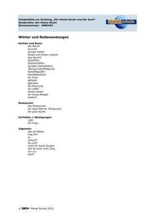 Sendung "Der kleine Gnom und der Koch"