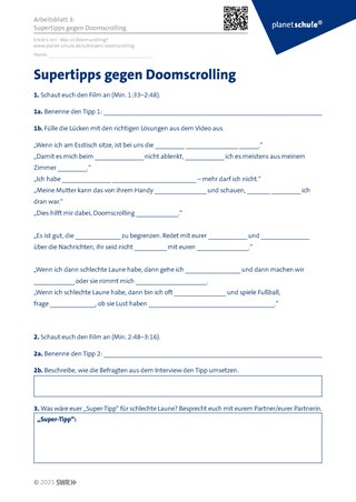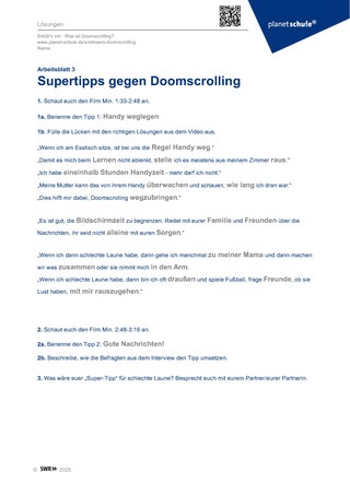 Film „Was ist Doomscrolling?“, Arbeitsblätter 1-4, iPads/Tablets, Zeitung, (Optional: eigene Handys zur Selbstreflexion)