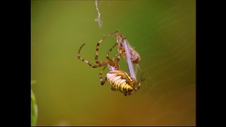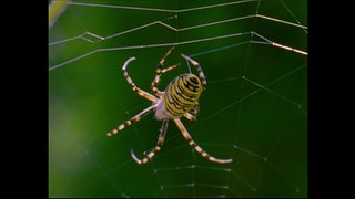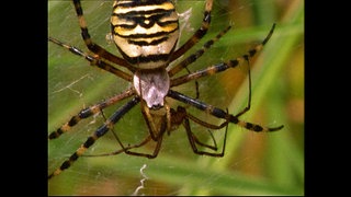 Nur an warmen, sonnigen Standorten konnte bei uns eine Radnetzspinne Fuß fassen, die ursprünglich vor allem im Mittelmeerraum anzutreffen war – die Wespenspinne. Diesen Namen verdankt sie ihrer auffallenden schwarz-gelben Färbung.