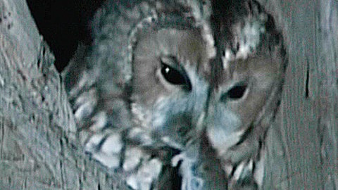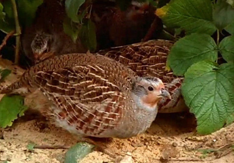 Der Altvogel senkt den Schnabel und erbricht das Futter auf den Nestboden.