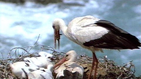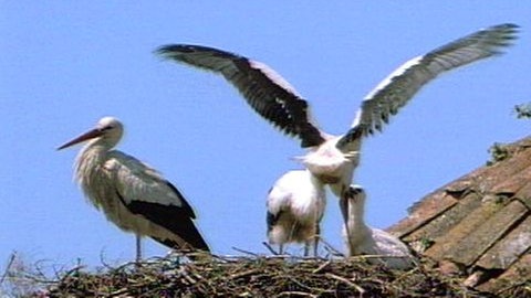 Früher gehörten Storchennester auf den Dächern zum Bild vieler Dörfer. Der liebevolle Umgang der Storcheneltern mit ihren Küken war vielleicht der Ursprung der Legende vom Storch als Kinderbringer.