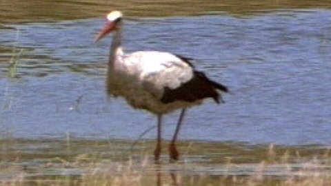 Nur wenige Kinder haben das Glück, in ihrer unmittelbaren Umgebung noch den Klapperstorch auf dem Kirchen-, dem Schulhaus- oder dem Rathausdach zu erleben, und nur selten sieht man den Weißstorch fliegen oder durch Feuchtwiesen schreiten. Kaum ein Kind lernt deshalb im Kindergarten oder in der Schule das alte, früher jedem wohl vertraute Rätsellied: „Auf unserer Wiese gehet was, watet durch die Sümpfe, hat ein schwarzweiß Röckchen an und auch rote Strümpfe, fängt die Frösche schnipp, schnapp, schnapp, klappert lustig, klapperdiklapp. Wer kann es erraten?” Und nur wenige Kinder könnten deshalb auf Anhieb die richtige Antwort geben. Kein anderer Großvogel hat sich dem Menschen als Kulturfolger so eng angeschlossen wie der Weißstorch, und kein anderes Tier ist bei uns Gegenstand so vieler alter Fabeln, Reime, Kinderlieder und Überlieferungen (früher brachte der Klapperstorch die Neugeborenen, nachdem er zuvor die Mütter ins Bein gezwickt hatte) wie er. Nicht von ungefähr ist der Storch Wappenvogel des Deutschen Bundes für Vogelschutz und war „Vogel des Jahres” 1984 und 1994. Damit sollten viele auf seine derzeitige Situation aufmerksam gemacht werden. Offene Landschaften, Feucht-Grünland, die Auenlandschaften der Flussniederungen mit periodischen Überschwemmungen und extensiv genutzte Wiesen und Weiden sind der bevorzugte Lebensraum des Storchs. Die Tiere sind gekennzeichnet durch einen langen (14 bis 19 cm) roten Schnabel und lange rote Beine. Das Gefieder ist weiß, nur die Schwungfedern und Teile der Oberflügel-Decken sind schwarz. Die Männchen wiegen durchschnittlich etwa vier Kilogramm, die Weibchen 3,5 Kilogramm. Störche werden bis zu 25 Jahre alt (für einen männlichen Storch in der Wiederansiedlungs-Station Altreu/Schweiz sind mehr als 32 Jahre verbürgt). Das erwachsene Tier wird etwas mehr als einen Meter groß. Die Flügelspannweite beträgt ca. zwei Meter. Der Weißstorch fliegt mit ausgestrecktem Hals und kann eine Geschwindigkeit von 45 km pro Stunde erreichen.
