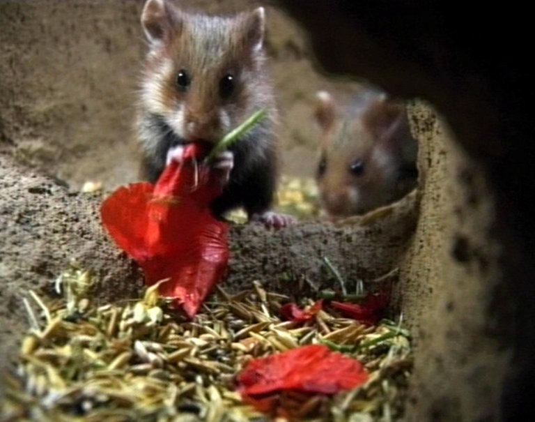 Nicht umsonst heißen sie auch Klapperstörche , denn die Weißstörche verständigen sich durch Klappern. Dabei biegen sie in höchster Klappererregung die Hälse so weit zurück, daß die Köpfe den Rücken berühren und die Schnäbel in die Luft zeigen. Die Vögel klappern zur Begrüßung, aber auch als Drohung. Dabei wird das Drohklappern durch pumpende Flügelbewegungen unterstützt. Störche sind bei der Auswahl ihrer Nahrung überhaupt nicht wählerisch. Sie fressen Regenwürmer und Insekten, z.B. Heuschrecken oder Maikäfer – in Afrika auch Wanderheuschrecken – Feldmäuse, Maulwürfe, Eidechsen, gelegentlich Schlangen, manchmal Jungvögel von Bodenbrütern, Fische – eher kranke oder auch verendete – und kleinere Wassertiere, die mit der Schnabelspitze ertastet werden. Größere Tiere werden immer mit dem Kopf voran gefressen, nachdem sie zuvor mit dem Schnabel getötet wurden. Übrigens spielen Frösche auf dem Speiseplan des Storchs keineswegs eine so überragende Rolle wie gemeinhin angenommen wird.