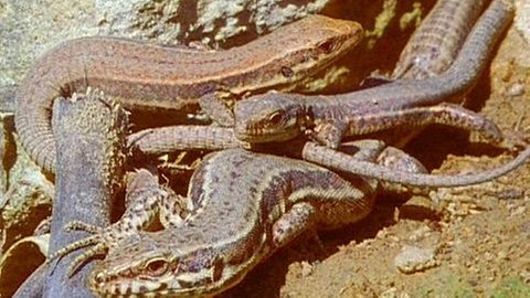 - Warum sieht man Eidechsen (im Film zum Beispiel eine Gruppe von Mauereidechsen) oft in der Sonne liegen, besonders morgens und abends? (Sie wärmen sich auf. Als wechselwarme Tiere ist ihre Körpertemperatur von der Umgebung abhängig. Nur bei ausreichender Körpertemperatur können sich die Eidechsen schnell bewegen.)