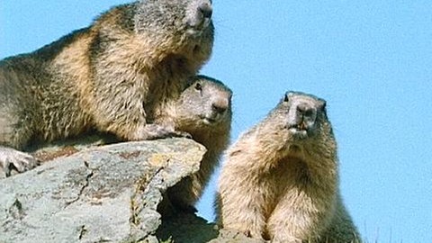 Auch die warme Jahreszeit verbringen die Murmeltiere in der Großfamilie. Nach einem ausführlichen Morgenputz genießen die Erdbewohner die Sonne, wobei sie sich gegenseitig durch ein weit hörbares Pfeifen vor Gefahren warnen. Insbesondere dem Vater kommt die Aufgabe des Bewachens zu. Murmeltiere sind Vegetarier. Wie kleine Rasenmäher stutzen sie die alpinen Matten.