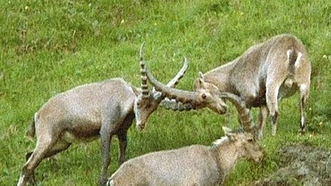 Das Murmeltier ernährt sich von Gräsern und Kräutern. Es macht bis zu 9 Monate lang Winterschlaf etwa 1,5m tief unter der Erde in einem selbstgegrabenen Wohnkessel. Dieser ist zur Wärmeisolation dick mit Heu ausgepolstert. Die Murmeltiere schmiegen sich eng aneinander und optimieren so den Wärmehaushalt. Die Tiere leben im Winter ausschließlich von den Körperfettreserven, die sie sich im Sommer zulegen. Die Alpenmurmeltiere sind hochsoziale Säugetiere. Sie leben in Großfamilien von einem erwachsenen Paar mit Nachkommen verschiedener Jahrgänge. Die Nachkommen bleiben mindestens bis zur Geschlechtsreife in der Elternfamilie, genießen also möglichst lange den Schutz der Gruppe. Erst dann sind sie bereit das Risiko der Wanderschaft auf sich zu nehmen und schwer genug, um den Strapazen bis zur Gründung einer neuen Familie standzuhalten. Steinböcke leben im felsigen Bergland. Sie sind hervorragende Kletterer und ernähren sich von Gräsern, Kräutern, Laub und Nadelholztrieben.