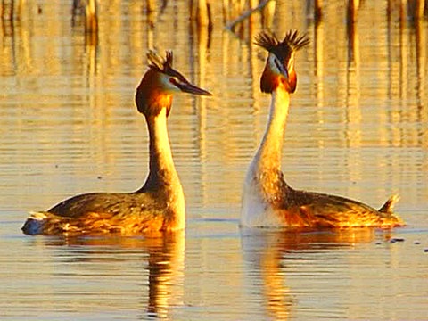 Der Höckerschwan ist nicht zu übersehen. Der große weiße Vogel mit dem langen gebogenen Hals und dem schwarzen Stirnhöcker auf dem orangefarbenen Schnabel gleitet scheinbar mühelos über das Wasser. Jungschwäne sind unscheinbar grau und entwickeln sich erst später vom „hässlichen Entlein“ zum „schönen Schwan“. Der Schwan ernährt sich von Wasser- und Sumpfpflanzen, die er - den langen Hals unter die Oberfläche gestreckt - bis in 1 m Tiefe abweidet. In Mitteleuropa bleibt der Schwan auch im Winter an heimischen Gewässern. Skandinavische Schwäne wandern im Winter in südlichere Gefilde.