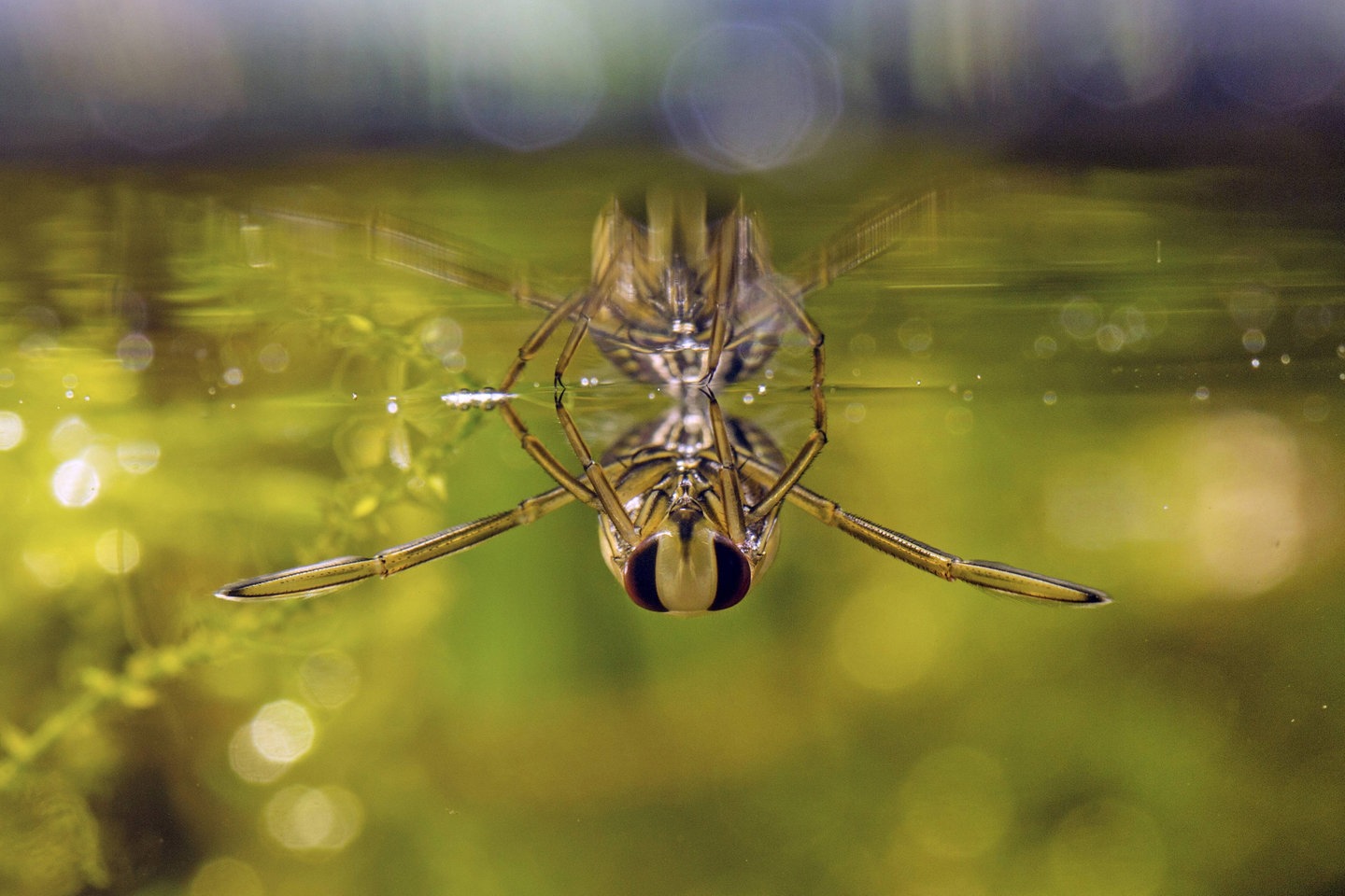 Der stromlinienförmige, schwarze Taumelkäfer ist einer der schnellsten Käfer auf und im Wasser. Trotz seiner geringen Größe von nur 5-7 mm schafft er Rekordgeschwindigkeiten von 20 cm pro Sekunde oder 0,72 km/h. Da er oft schnelle Kreise auf der Wasseroberfläche dreht, wird er auch Dreh- oder Kreiselkäfer genannt. Er bevorzugt ruhige Gewässer mit wenig Vegetation. Seine Fühler berühren immer die Wasseroberfläche, um jede Bewegung von Beutetieren oder Hindernissen wahrzunehmen. Eine weitere optimale Anpassung an das Leben in und auf dem Wasser sind die Augen der Taumelkäfer: Sie sind zweigeteilt. Während sie schwimmen, befindet sich die untere Augenhälfte im Wasser, die obere Augenhälfte über Wasser. Wird der Käfer gestört, taucht er ab und nimmt an seinem Hinterleib eine Luftblase als Sauerstoffvorrat mit. Die Larve des Taumelkäfers ist ebenfalls schwarz mit rötlichen Beinen. Sie ist lang und dünn und lebt auf dem Gewässerboden, wo sie kleine Tiere fängt, die auf oder im Boden leben. Um sich zu verpuppen, verkriecht sie sich in kleine Lehmkammern am Ufer. Im Frühherbst schlüpfen die jungen Käfer, die gut fliegen können und den Winter an Land verbringen.
