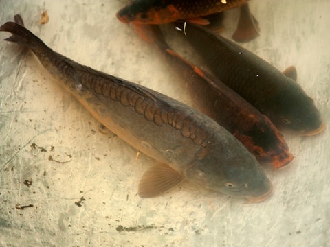 Der Karpfen kann bis zu über einen Meter groß werden. Die heimische Wildform des Karpfens hat einen lang gestreckten Körper und vier Barten am Oberkiefer. Er kann von braun, blau bis dunkelgrün alle Farbschattierungen aufweisen. Der Bauch ist meistens heller und die Flossen oft rötlich. Der Karpfen ist meist nachtaktiv und durchwühlt den Grund nach Bodentieren aber auch Pflanzenteilen. Es gibt viele verschiedene gezüchtete Formen des Karpfens, die sich in Körperbau und Beschuppung unterscheiden. Viele Karpfenarten, wie zum Beispiel der Graskarpfen, sind eingeführte Arten, die sich aber auch in unseren Gewässern sehr wohl fühlen.