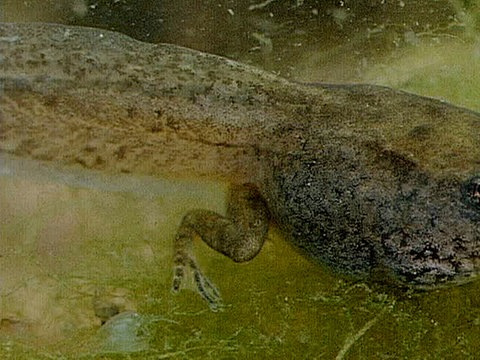 Die Kiemenfußkrebse (Anostraca ) sind evolutionsgeschichtlich die ältesten Krebse in Mitteleuropa. Sie haben keine Schale, aber 11 Blattbeinpaare, gestielte Augen und schwimmen auf dem Rücken. Es gibt nur wenige Arten, und sie sind recht selten. Die häufigste Art in unseren Gewässern ist der Frühjahrskiemenfuß (Siphonophanes grubei ). Er ist grünlich bis bläulich gefärbt, und man findet ihn eher in Tümpeln als in Seen. Er legt seine Eier im Schlamm ab, wo sie jahrelange Trockenheit überdauern können und erst schlüpfen, sobald wieder Wasser in den Tümpel kommt.
