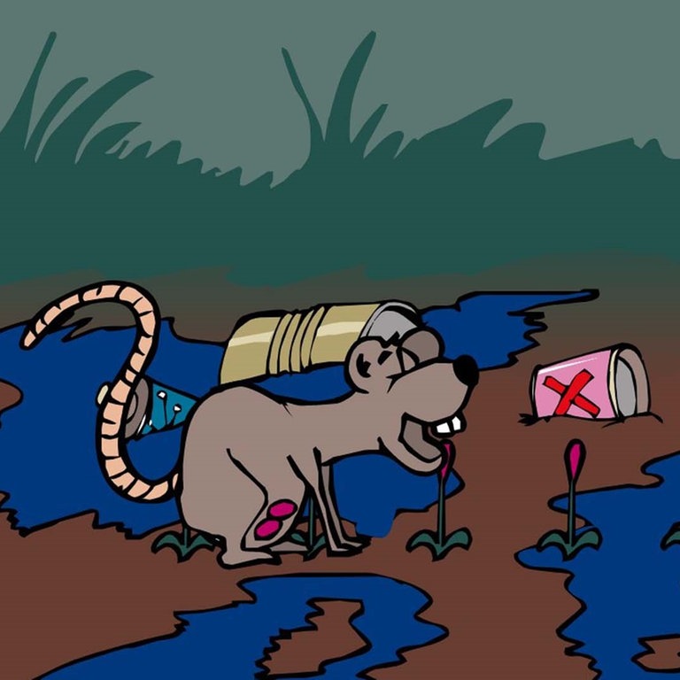 Ein Sack mit giftigem Müll hat im idyllischen Wald eigentlich nichts verloren. Welch tödliche Gefahr das Gift für die gesamte Nahrungskette und letztendlich auch für den Menschen bedeutet, kann hier interaktiv erkundet werden.