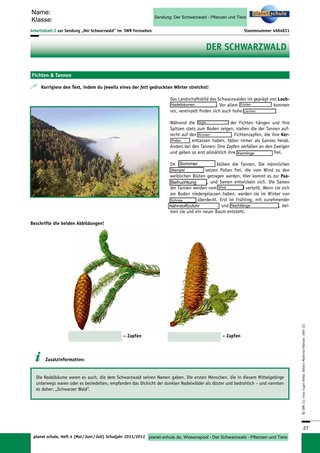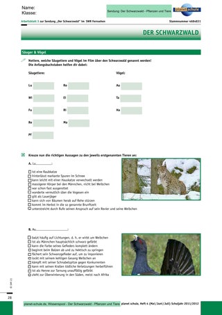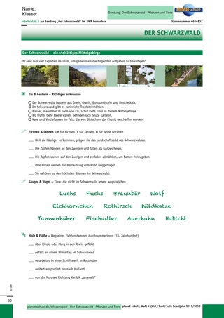 Im Fachbereich Naturwissenschaften stellt das Staunen über die biologische Vielfalt ein unterrichtliches Grundprinzip dar. Die Sendung „Der Schwarzwald - Pflanzen und Tiere“ bietet ausgewählte Einblicke in Fauna und Flora, verdeutlicht die Prägung der Landschaft aufgrund bestimmter Pflanzen- und Tierarten und informiert zusätzlich über Nutzungsmöglichkeiten durch den Menschen.