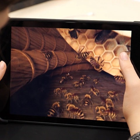 Die Oculus-Quest-Brille aufgesetzt und schon geht’s mitten hinein in die Welt der Bienen! Die digitale Technologie der Virtual Reality (VR) bietet einen 360° Rundumblick und verschiedene Spielmöglichkeiten, um den Bienenstock und sein Innenleben mit ungewohntem Blickwinkel zu erkunden: