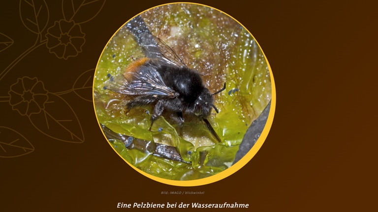 In Filmen und kurzen Texten erfährst du, warum Wildbienen Wasser brauchen oder warum auch Mauern ein wichtiger Ort für Bienen sind.