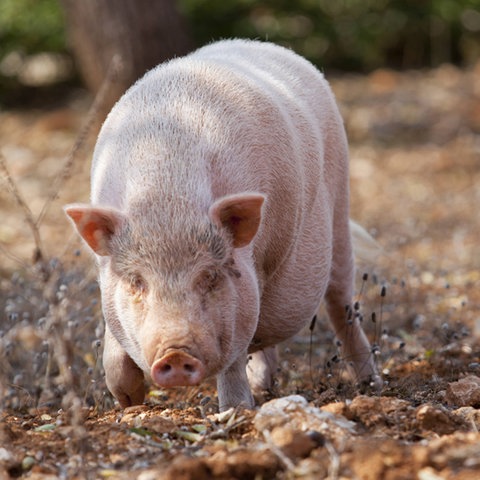 Ein Köhler dichtet einen schwelenden Holzkohlenmeiler ab