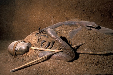 Gerdalf ergibt sich in sein Schicksal. Er sinkt immer tiefer. Ein letztes schmatzendes Geräusch - wo gerade noch sein Kopf zu sehen war, treibt ein gelber Schleier von Baumpollen auf dem schwarzen Wasser. Fünf Minuten später finden die Römer keine Spur mehr von ihm. Es sollte fast 2000 Jahre dauern, bis ein Torfarbeiter Licht in das Rätsel von Gerdalfs Verschwinden bringen konnte. Er entdeckte eine germanische Moorleiche...
