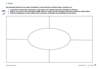 Die Schülerinnen und Schüler überlegen, welche Bedeutung Arbeit für ihr Leben hat. Sie arbeiten dafür in Gruppen zusammen und nutzen die Placemat-Methode.