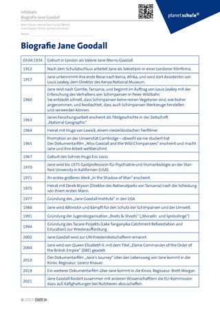 Tabellarischer Unterrichtsverlauf - Jane Goodall (PDF)
