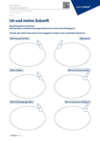 Vertiefen können Schüler:innen ab Klasse 6/7 die Thematik mit Arbeitsblatt 5. Hier entwickeln sie eigene Ziele und Zukunftsperspektiven. Die Vorstellung der Arbeitsergebnisse sollte auf freiwilliger Basis im Plenum stattfinden.