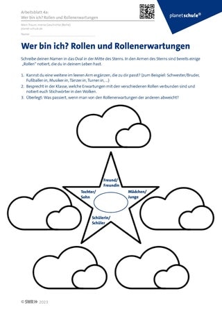 Die Arbeitsblätter 4b und 4c können ab Klasse 6/7 zur Vertiefung des Themas eingesetzt werden. Hier werden Rollen, Rollenerwartungen, aber auch Rollenkonflikte näher beleuchtet, sowie mögliche Lösungsansätze im Plenum diskutiert.
