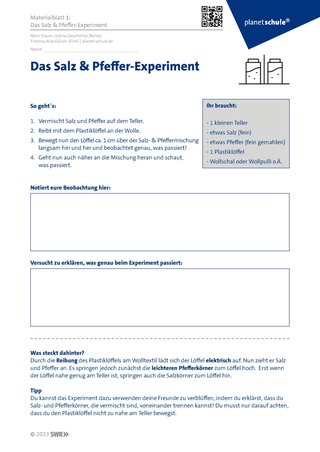 Material: Materialblatt 1, Salz, Pfeffer, Teller, Plastiklöffel, Wollschal oder Wollpulli o.Ä.