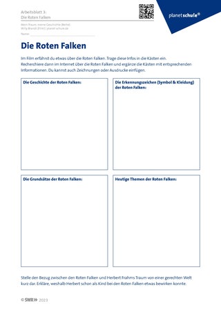 Anschließend informieren sich die Schüler:innen mit Arbeitsblatt 3 genauer über die „Roten Falken“ und stellen ihre Arbeitsergebnisse im Plenum vor.