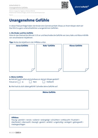 Material: Podcast, Abspielgerät, Arbeitsblatt 1