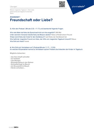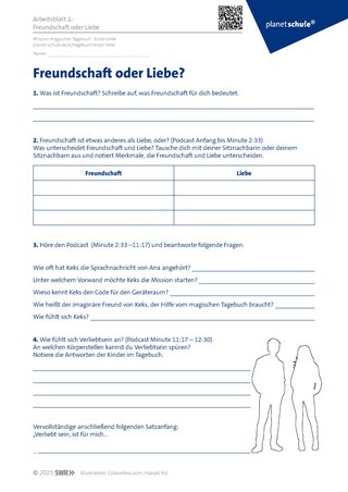 Material: Podcast, Abspielgerät, Arbeitsblatt 1 „Freundschaft oder Liebe?“