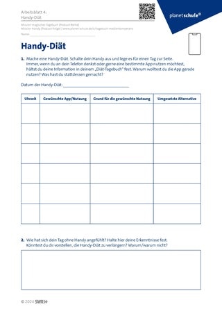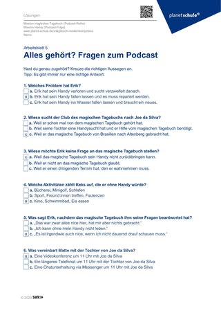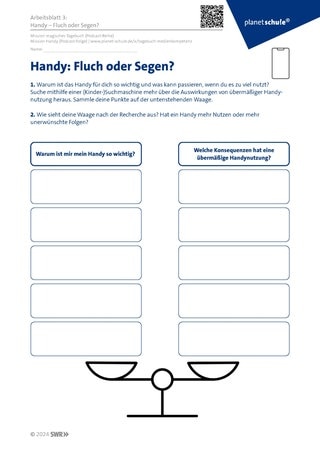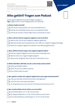 Material: Abspielgerät, Podcast, Arbeitsblatt 1, Arbeitsblatt 2, Stift, Handy