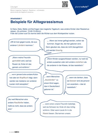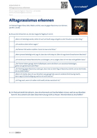 Material: Podcast „Mission magisches Tagebuch ⋅ Rassismus – voll daneben“, Materialblatt 1, Arbeitsblätter 1-5